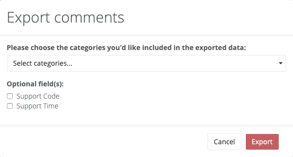 - Export comments (including category, support code and support time)