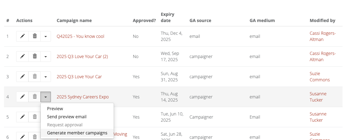 - Once you are happy with the campaign template and it is approved, you can then follow the guide to sending a campaign to complete the process. The option to generate a member campaign will be available from the record action once it is approved.