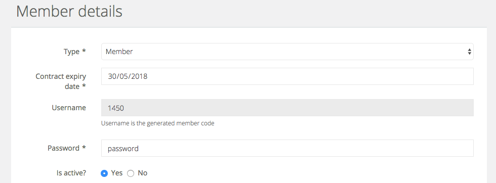 - On the create new member page, you will at a minimum need to fill out any details that are mandatory, these are marked with a *.